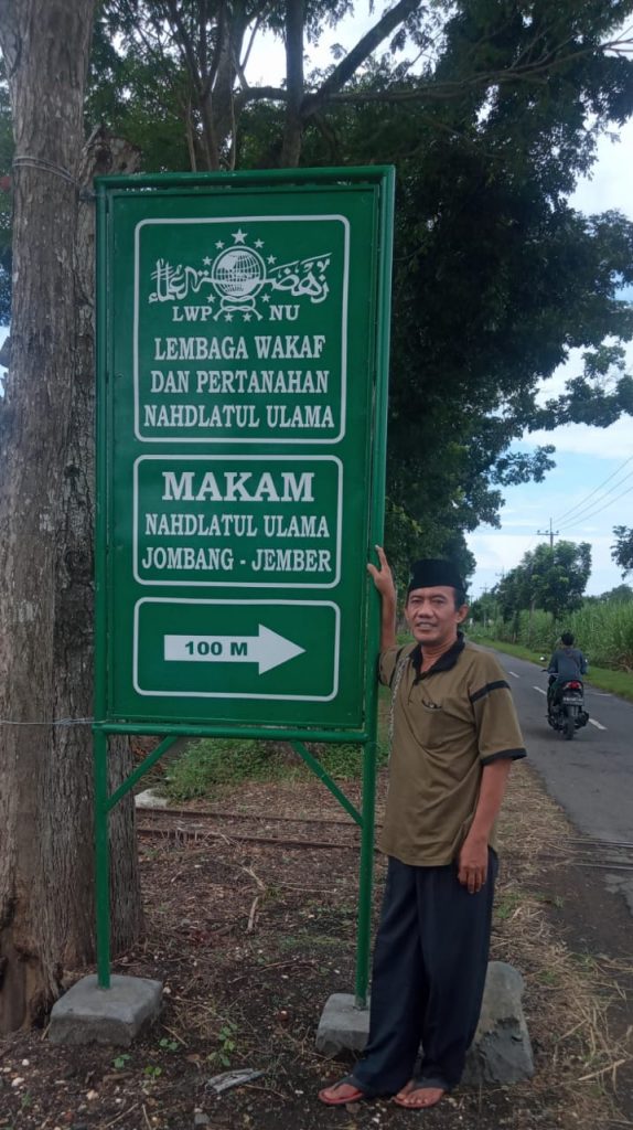 Yang menarik adalah adanya papan petunjuk yang mengarahkan ke pemakaman sudah tertulis ” Lembaga Wakaf dan Pertanahan NU, Makam NU, Jombang, Jember”.