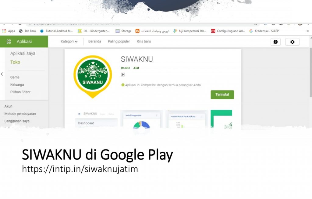 Berikut link e-siwak (sistem wakaf) berbasis android berikut yang sudah bisa didownload di play store https://play.google.com/store/apps/details?id=devitsnu.siwaknu
